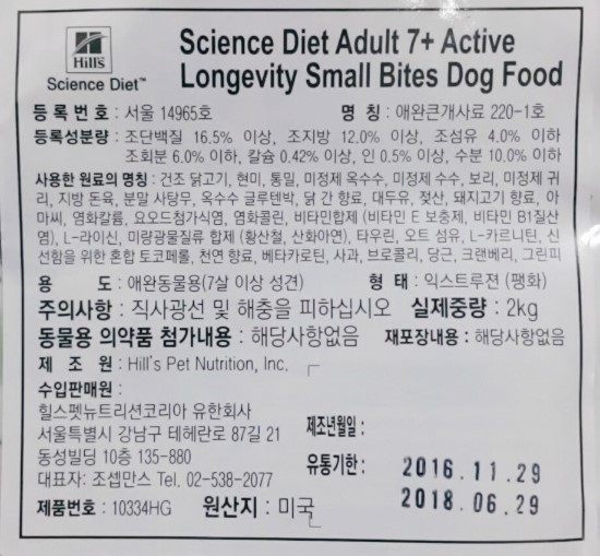 힐스펫 다이어트 어덜트 7+ 스몰바이트 입니다.