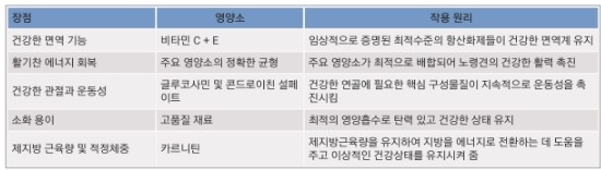 양질의 재료와 정확한 영양성분