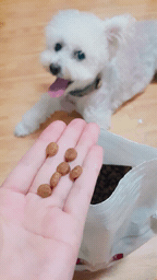사료 알갱이에서 고소한 냄새가 나요.